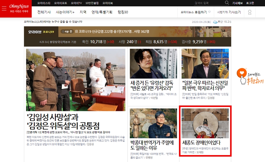 (제40회 장애인의 날을 맞아, 세종이야기꾼 오채원이 작성한 '세종도 장애인이었다'는 오마이뉴스 탑 기사로 채택되었으며, 세종시대의 장애인에 대한 인식을 살펴보고자 하였습니다. 기사 바로 가기 : http://omn.kr/1nf5d)